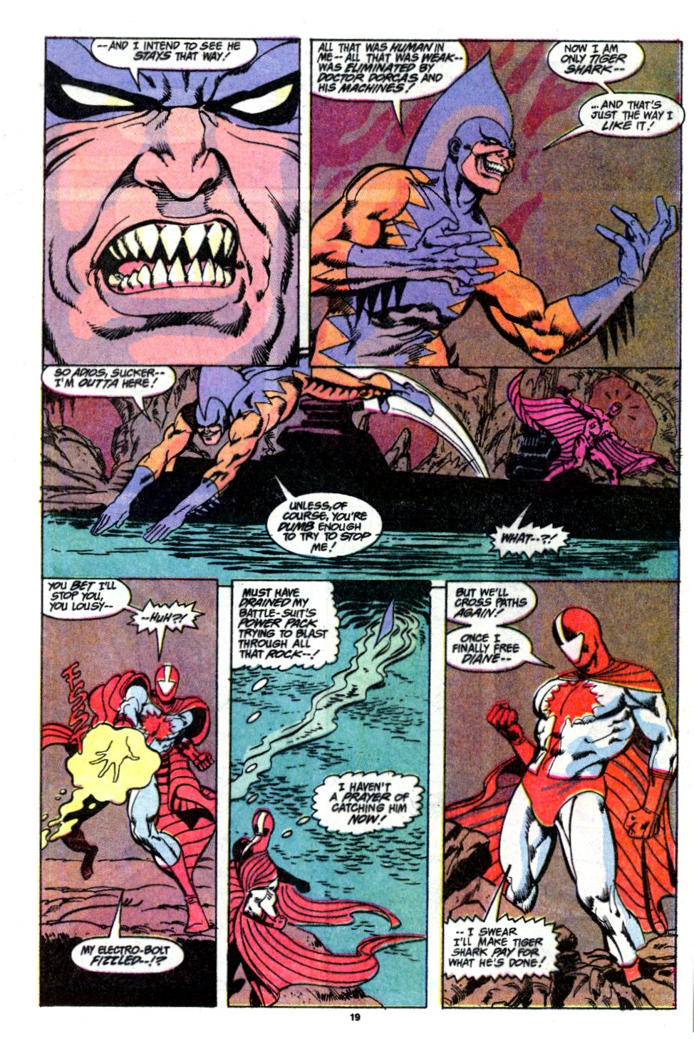 A Guardsman tracks down Stingray, who is married to Tiger Shark’s human sister, and tells them that Tiger Shark is sick and dying as a prisoner in The Vault. Of course, Tiger Shark wasn’t really sick. He was doing a Harvey Weinstein, pretending to be infirm so that he could escape punishment and kidnap his own sister.